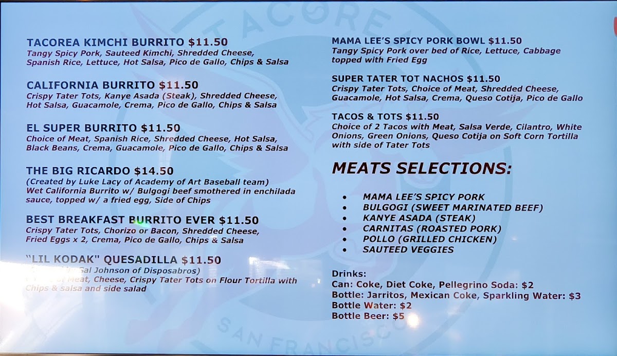 Tacorea Menu